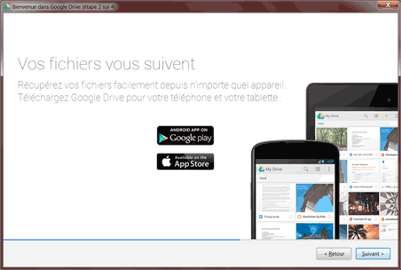 À l'issue de l'installation, un dossier Google Drive est créé. Son contenu est alors synchronisé avec le contenu Google Drive sur le web. Sous Windows 7, l'emplacement par défaut de ce dossier partagé est : 'C:\Users\(nom de l'utilisateur)\Google Drive'.